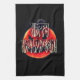 This graphic drawing, has been photo-edited, to enhance, this Menacing, pumpkin image, grinning, in orange, yellow, black, and grey, colours-with Happy Halloween, Emblazoned, across the front, in macabre, white lettering.