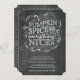 This rustic invitation features the saying "Pumpkin spice and everything nice" in vintage lettering on a chalkboard background. Perfect for any autumn parties: pumpkin carving, Halloween, Thanksgiving
