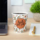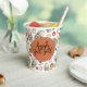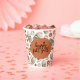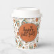 This paper cup is perfect for anyone who looks forward to fall and all things pumpkin spice. The design features a watercolor image of a pumpkin spice drink with an assortment of fall goodies with the saying "happy fall y'all" in black hand lettering within an orange circle.