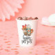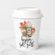 This paper cup is perfect for anyone who looks forward to fall and all things pumpkin spice. The design features a watercolor image of a pumpkin spice drink with an assortment of fall goodies with the saying "happy fall y'all" below in a black hand lettering.