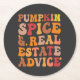 Pumpkin Spice & Real Estate Advice Funny Groovy Round Paper Coaster