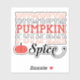 Celebrate the season with this bold Pumpkin Spice repeated text sticker featuring a pumpkin graphic. A fun fall style for pumpkin spice lovers and anyone who enjoys cosy autumn vibes. Great for Halloween, Thanksgiving, autumn gatherings, and sweater weather season.