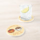 Sandstone coaster features an original marker illustration of a pumpkin spice coffee latte and an orange harvest pumpkin. Great for autumn!