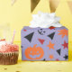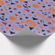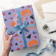 The "Pumpkin, Stars, and Leaf Seamless Wrapping Paper" features pumpkins nestled in autumn leaves with shining stars and spooky Halloween words, perfect for Halloween-themed gifts.