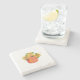 The coasters are gorgeous, a quality feel and heavy weight. They look like a precious archeological find. A rustic stone juxtaposed with a modern floral black and white print. I like the way the print goes slightly imperfect on the cut stone edges giving them a kind-of natural beauty.