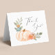 Cute autumn baby shower thank you card with "Thank You" in a stylish grey script with a heart swash and a watercolor bouquet of an orange pumpkin, florals and greenery. On the inside, personalise your thank you message in simple modern typography and add your names in a signature-like script or leave blank for a handwritten note.