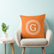 Pumpkin Wht Greek Key Rnd Frame Initial Monogram Cushion