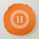 Pumpkin Wht Greek Key Rnd Frame Initial Monogram Round Cushion