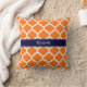Pumpkin Wht Moroccan #5 Navy Blue Name Monogram Cushion