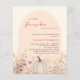 An elegant a little Pumpkin is on the way Baby Shower invitation. A cream, beige coloured background and a peach coloured arch. Decorated with watercolored wildflowers in beige, pink and a cream coloured pumpkin.