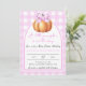 Invite your guests with this fall pumpkin with pink bow, pink cage and arch baby shower. "A little pumpkin is on the way"