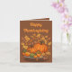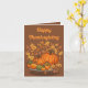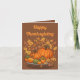 Celebrate Thanksgiving with this greeting card that can be personalise and shows an image of pumpkins and leaves that celebrate the season.