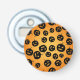 Seamless pattern design with Halloween pumpkins silhouettes on orange background.