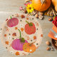 Pumpkins Fall Leaves Pattern Paper Plates. Original watercolor art.