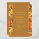Orange pumpkins and fall leaves custom gold foil Thanksgiving dinner invitation.