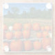 Pumpkins on display at farm stand ready to sell, set against a beautiful landscape background and deep blue sky on a perfect autumn day.