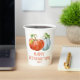 The Happy Friendsgiving paper cup is a wonderful addition to your fall festivities, perfect for sipping on your favourite hot or cold beverage while enjoying the company of friends and family. It features an eye-catching design of burnt orange and white pumpkins with green leaves that will add a touch of elegance to any occasion. You can also personalise it with your own text and date to make it even more special.