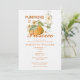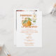 Celebrate the bride-to-be with this sweet and cosy fall bridal shower invitation, featuring a cheerful pumpkin surrounded by colourful autumn leaves and woodland accents.