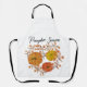A cute design with tree pumpkins in shades of orange , inside a border of little autumn flowers and leaves in the shape of a heart. On top the saying "Pumpkin season"