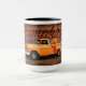 Unique mug design featuring an antique truck painted orange filled with fall pumpkins with a wood texture background. Personalise by adding your name.