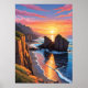 Discover the unique beauty of Punakaiki’s Pancake Rocks with this captivating artwork. The scene highlights the fascinating, layered limestone formations that resemble stacks of pancakes, carved over millions of years by the relentless ocean waves.