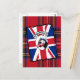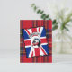 Funny punk guineafowl bird collage wearing a mohican mowhawk hairstyle with and an anarchy text with a red white and blue British union jack and a royal Stewart Scottish tartan background. For matching guinea fowl products and more fun animal characters visit the VINTAGEPRINTSORE.