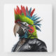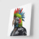 Funny Punk Rocker Parrot with mohican hairstyle wearing a leather jacket.