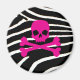 Punk hot pink skull with black and white zebra print background. By Brattigrl