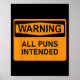 Puns Are Intended Funny Warning Sign Sarcastic Humor Joke