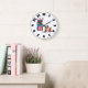 Everyone loves a good puppet show. This design is a fun one of some kids watching a puppet show. The puppets are in a little booth with the word puppets written on the top. The three kids are sitting watching. This puppet show design looks great on this clock. Perfect for yourself or as a gift
