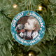 Puppy and Baby's 1st Christmas Photo Blue Snow Ceramic Ornament