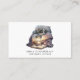 An illustration of a puppy on a pillow in a child's reading corner, children's author business card.