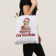 Over the shoulder Christmas tote bag with a comfortable shoulder strap measuring 28 inches long. The inside lining is black laminated for extra support. Cute Christmas puppy is pictured on both sides of the bag.