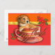 A puppy sitting in a cup with floral corners greeting card. Easily add your own message to the inside