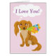 This dachshund puppy is hoping to cheer you up with a pretty bouquet of flowers. Personalise this design by clicking the "customise it!" button and editing the text.