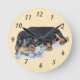 This cute rottweiler puppy is cuddling up to his grey teddy bear toy, he looks like he's enticing someone to play with him, those big pleading puppy rotty eyes certainly show everyone what big softies rottweiler dogs are. I painted wonderful little rottweiler pups portrait in soft pastels. This wall clock has the rottweiler dog portrait painting set against a neutral cream coloured background, it has a classic black watch strap that will suit all tastes. I'm sure it will make an original gift for everyone who is owned by a rottweiler or anyone who admires the breed and other dogs of all shapes and sizes. This unique art clock will be perfect to give to someone special, or maybe you just want to treat yourself to this original pet portrait clock. The watch face on this stylish clock has dark grey easy to read numbers that really stand out on the neutral background. If you're interested in commissioning a pet portrait for yourself or as a special gift for someone, please don't hesitate to email me for further details. I look forward to "chatting" to you:) Maybe you'll see your own beloved pet on a great zazzle product.