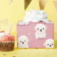 The image shows a repeating pattern of adorable, fluffy Bichon Frise puppies on a pink background, interspersed with white dots