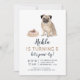 Puppy dog birthday invitation with Pug. Need a different dog? Please contact me and I'll check if I have one. You can change the colour of the font and the colour of the back. Don't hesitate to contact me if you have any questions.