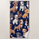 Puppy Dog Navy Blue Pattern Design Beach Towel