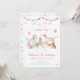 This adorable invitation features cute puppy dogs with balloons, banners and faux gold foil confetti.