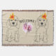 Puppy Drawing Flowers Welcome Text Throw Blanket