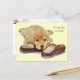 The cute but doleful expression on this little golden labrador retriever puppies face is irresistible, he looks so sad as he lays in the frog position cuddling the slippers, I just had to paint him and add him to my puppy portrait collection. I think this dog portrait makes a great "Missing You" postcard, I added the words "Missing You So Much" but you can customise this original cute postcard with your own text. I think this little pup makes a lovely image on this postcard and I'm sure he'll be appreciated by anyone who loves pictures of cute puppies, dogs and animals. The original cute puppy painting is painted in water-colour.