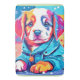 A colourful and cute art design of a puppy wearing a blue coat (This Design Made With AI). Place Order Today and Embrace the Joy of Shopping!