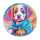 A colourful and cute art design of a puppy wearing a blue coat (This Design Made With AI). Place Order Today and Embrace the Joy of Shopping!