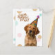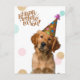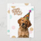 Celebrate someone's special day with this charming postcard featuring an adorable golden retriever puppy wearing a festive party hat. The playful design is accompanied by a bold "Happy Birthday to You!" message in a stylish, modern font. Perfect for sending warm birthday wishes to dog lovers and friends alike. This postcard is sure to bring a smile and brighten up their birthday! Ideal for personal use or as a unique gift.