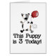 A cute puppy 3rd Birthday design tshirts, mugs, sweatshirts, magnets, cards, stickers, and more with puppy, red birthday balloon, and text that reads "This Puppy is 3 Today!".