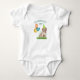 Adorable puppy with colourful balloons with a place to personalised with a name and age. Celebrate your child's first birthday with this cute baby bodysuit!