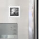 Black & white photo of a 10 day old Great Pyrenees puppy on a square magnet.