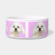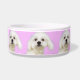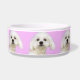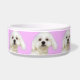 White dog Maltese (Shih tzu, Bichon Frise) puppy photography and design on pink background on a Large Pet Bowl