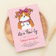 Celebrate your little one birthday with our Pawty Party Invitation. Designs features a cute corgi wearing tuxedo on an editable pastel pink colour background. This dog first birthday invitation is perfect for your little girl birthday party, your dog birthday party, your female corgi birthday party or a puppy themed baby shower.